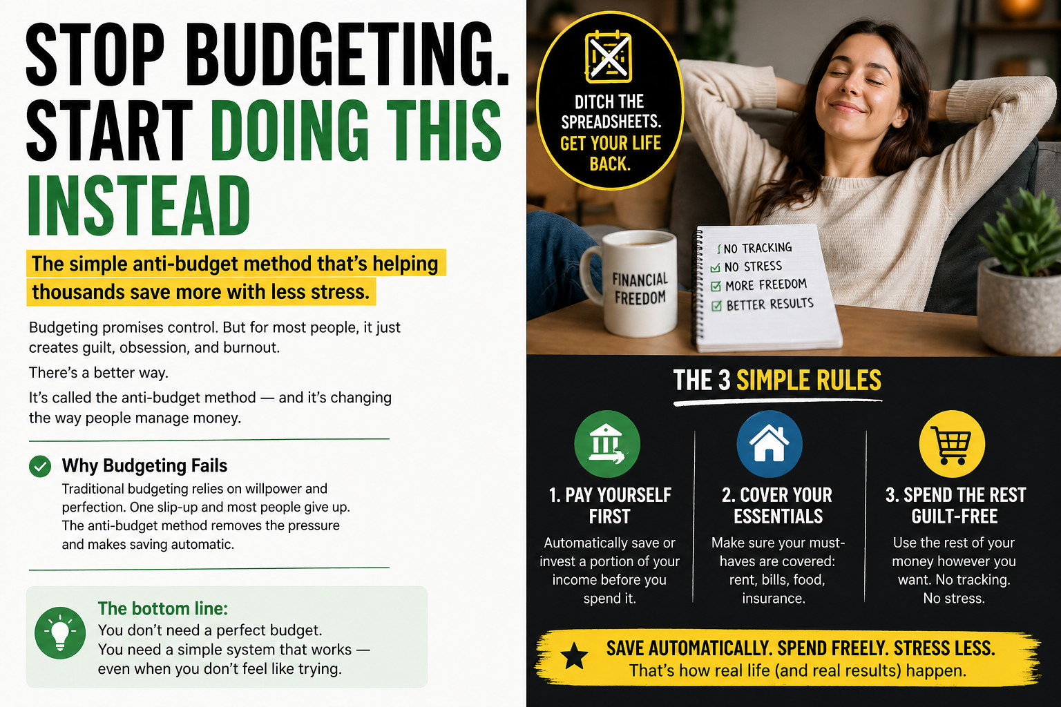 No spreadsheets. No daily tracking. Just three simple rules: